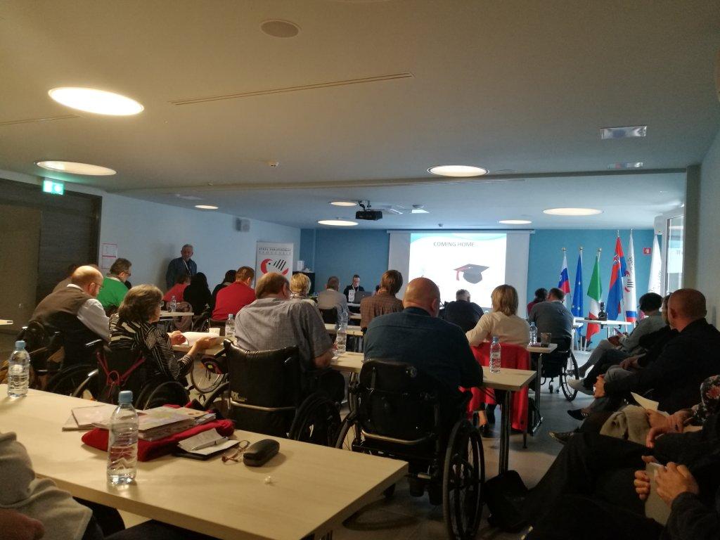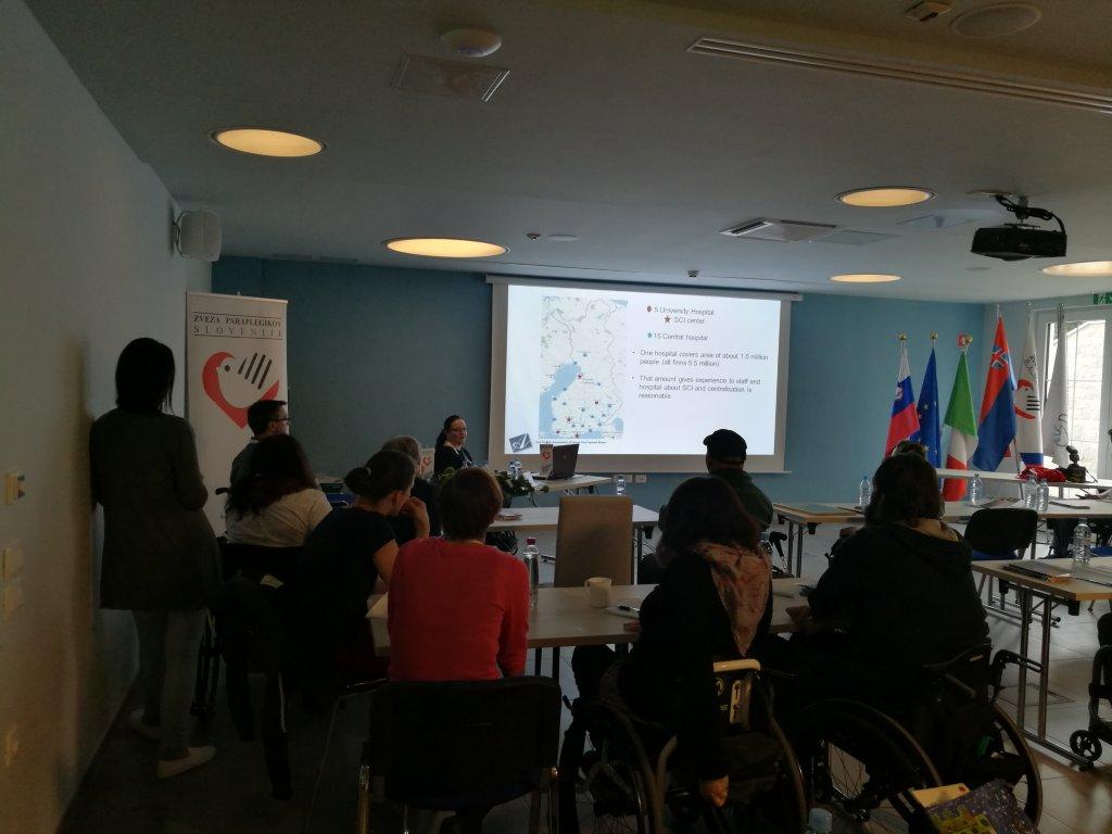 Tudi sami smo se udeležili omenjenega dogodka, in sicer v četrtek, 11. maja, ko je bil predstavljen slovenski model vseživljenjske podpore. Nataša Puzić, dr. med in asist., zaposlena na Univerzitetnem rehabilitacijskem inštitutu Republike Slovenije Soča, ki je v Sloveniji edini nacionalni zdravstveni zavod za rehabilitacijo bolnikov z okvaro hrbtenjače, je predstavila predvsem preventivne in kurativne vidike podpore. Na inštitutu izvajajo pomembne naloge s področja fizikalne in rehabilitacijske medicine, poklicne rehabilitacije in aplikacije tehničnih pripomočkov. Po zaključku rehabilitacije pa sistem ne omogoča nadaljnje spremljanje oseb po vrnitvi v domače okolje, kar je po njenem mnenju precej zaskrbljujoče. Nato je besedo prevzela Barbara Slaček, predstavnica Zveze paraplegikov Slovenije, ki je zbranim gostom predstavila delovanje Zveze paraplegikov Slovenije. Predstavila je postopek vključitve v ZPS, od operacije, zdravstvene oskrbe na URI-SOČA, do vrnitve v domače okolje in aktivno sodelovanje v ZPS oziroma njenih regijskih društvih. Na kratko je opisala delovanje Zveze in regijskih društev. V okviru predstavitve slovenskega modela vseživljenjske podpore sta sodelovala tudi Janez Trdina in Daniel Globokar, dr. med., ki sta spregovorila o socialni vključenosti paraplegikov. Slednji je predstavil 2 koncepta – medicinski in socialni koncept. Janez Trdina pa nam je zaupal svojo izkušnjo s paraplegijo. Po kratkem odmoru smo lahko prisluhnili še različnim modelom vseživljenjske podpore, ki so nam jih predstavile Tiina Siivonen iz Finske, Sue Browning iz Velike Britanije in Bojana Gladović iz Srbije.
