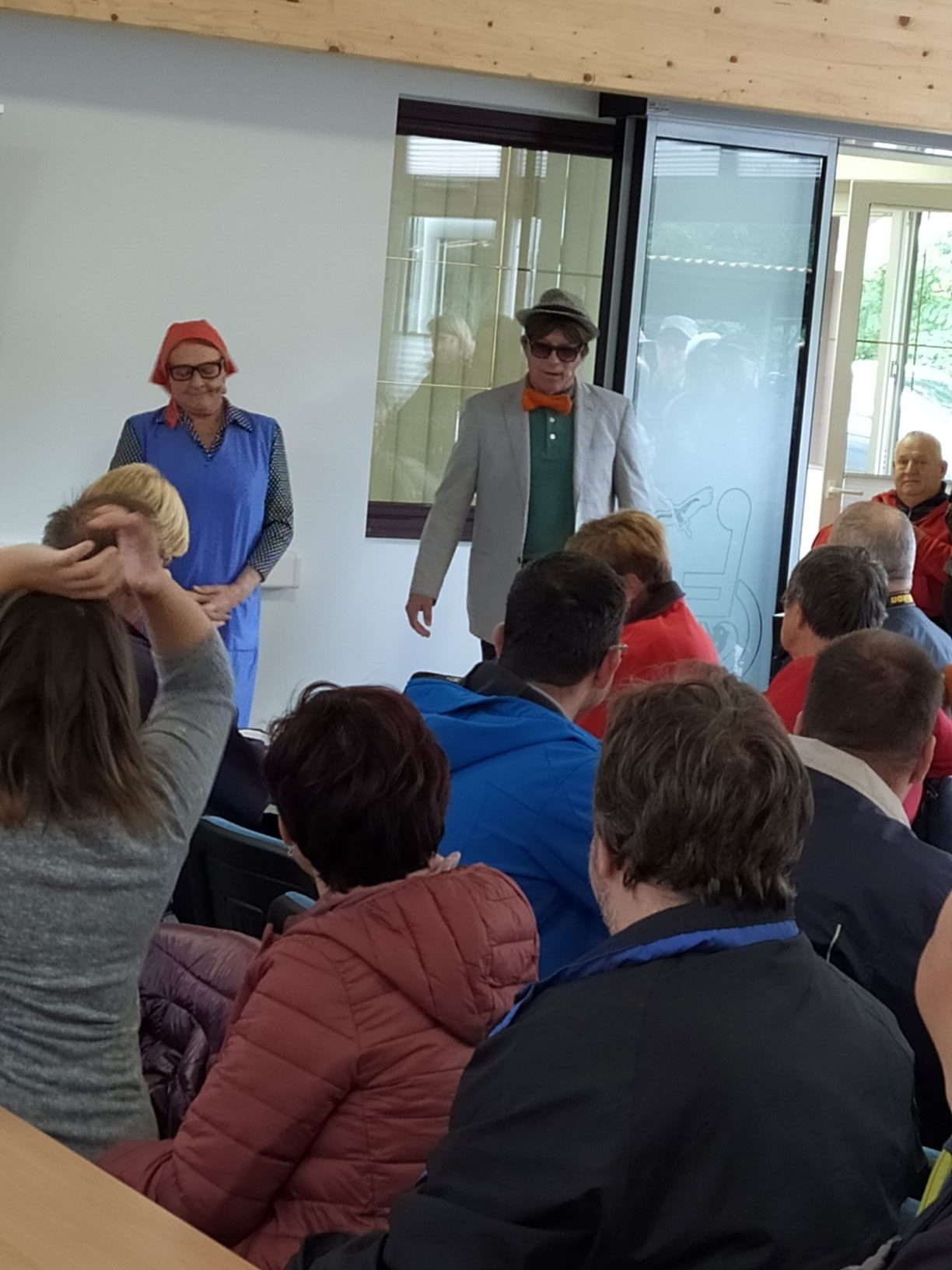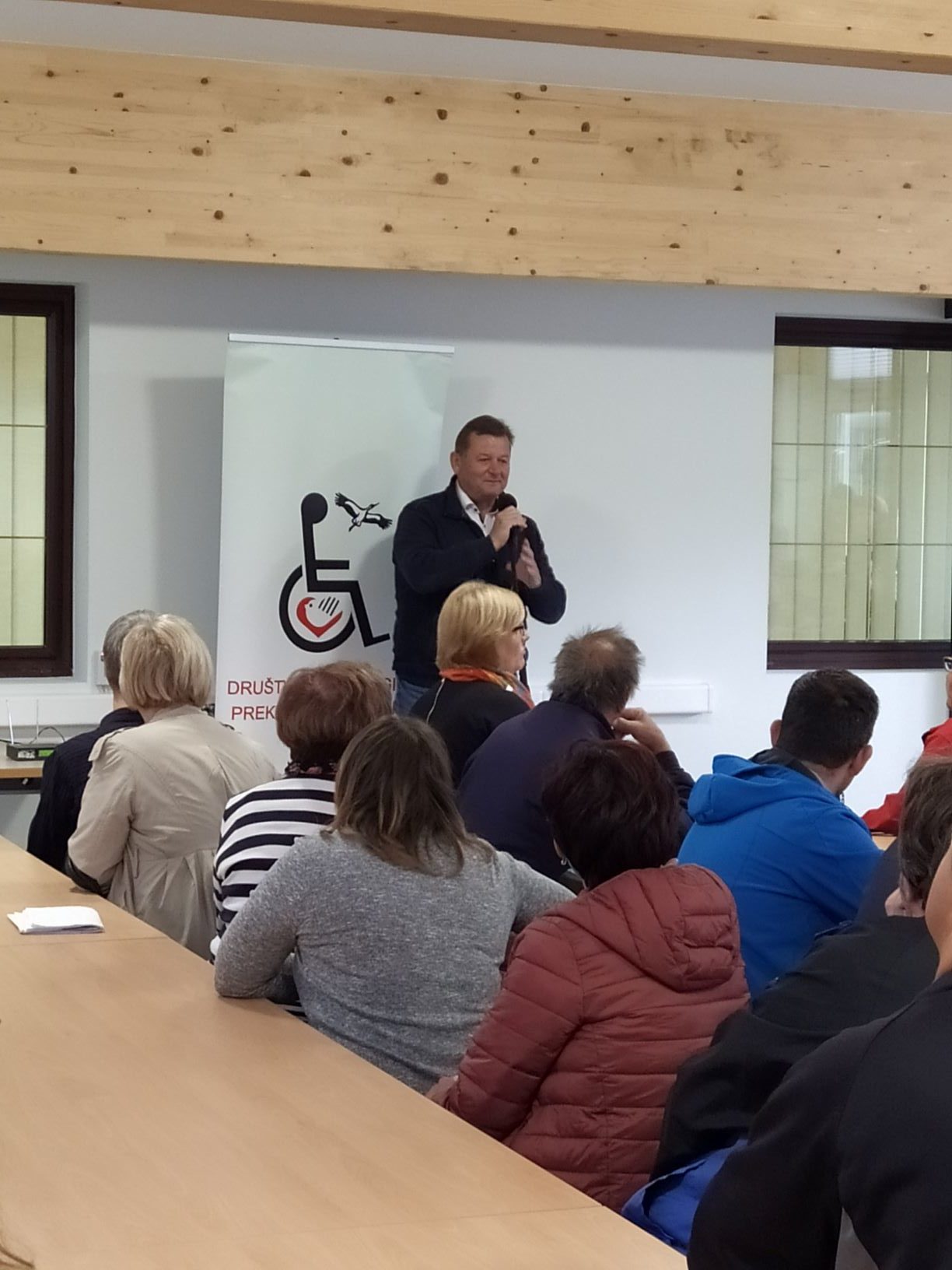 Na začetku nas je najprej pozdravil predsednik domačega društva Stanko Novak ter vsem skupaj zaželel prijetno dobrodošlico. Sledil je kratki kulturni program s skečem, ki ga je pripravilo Kulturno društvo Simon Gregorčič iz Velike Nedelje. Po zanimivem in zabavnem skeču, je besedo prevzel predsednik Sveta invalidov MOMS Branko Gornjec, ki se nam je med drugim tudi zahvalil, da smo z izvajanjem osebne asistence na našem društvu pripomogli k temu, da je v Pomurju poskrbljeno za kvalitetnejše življenje invalidov. Ob koncu kulturnega programa je zbrane nagovoril še župan MOMS dr. Aleksander Jevšek. V svojem nagovoru je izpostavil odlično sodelovanje Sveta invalidov in občine ter pomen dobrih medsebojnih odnosov. Zahvalil se je tudi vsem prostovoljcem in poklicnim delavcem, ki skrbijo, da je življenje invalidov kvalitetnejše in se z njihovo pomočjo lažje vključujejo v družbeno življenje. Čeprav je bilo zunaj deževno, je ob koncu svojega nagovora vsem skupaj zaželel, da bi to bil dan, ko je bil dež lep.