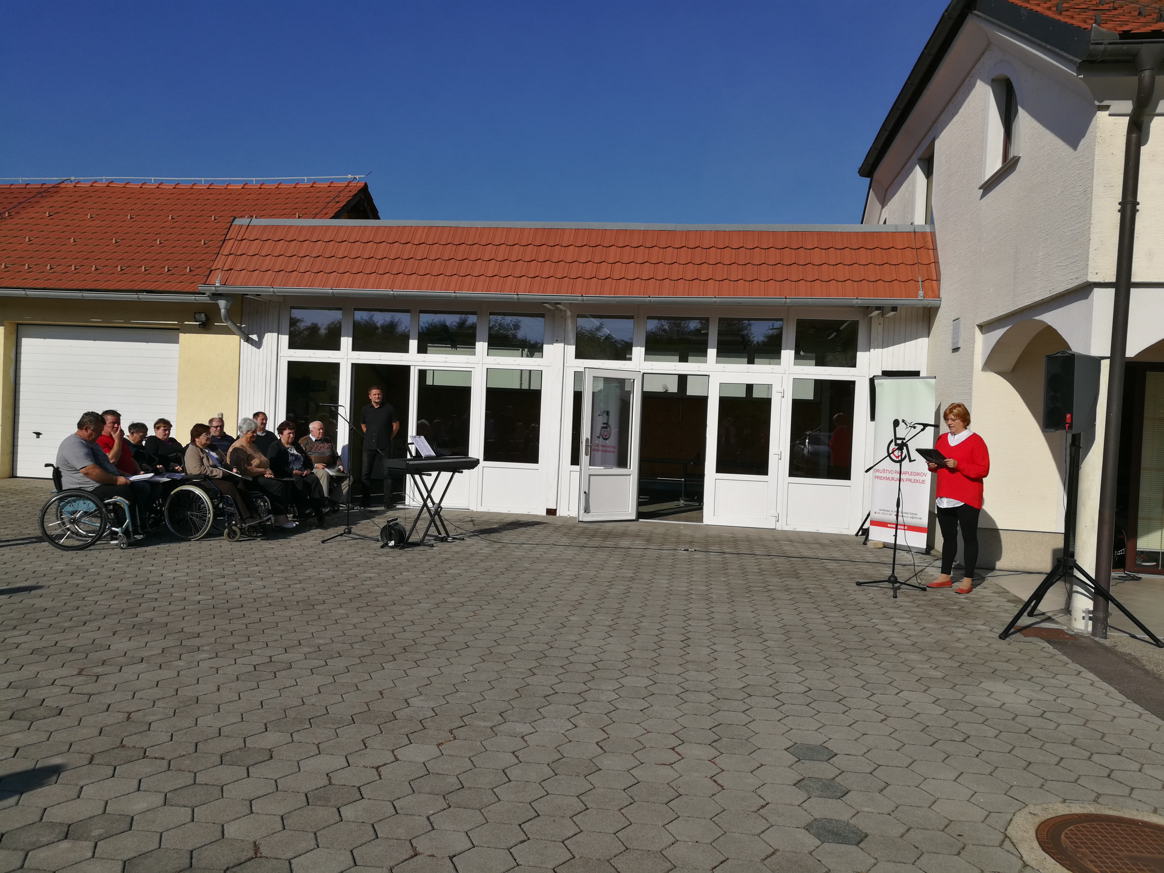 Med pozdravnimi nagovori so se predstavili tudi naši pevci Komornega pevskega zbora Društva paraplegikov Prekmurja in Prlekije pod vodstvom novega mentorja Matije Horvata. Zapeli so pesmi z naslovom V našen kraji je lipou, En hribček bom kupil in Kazen.