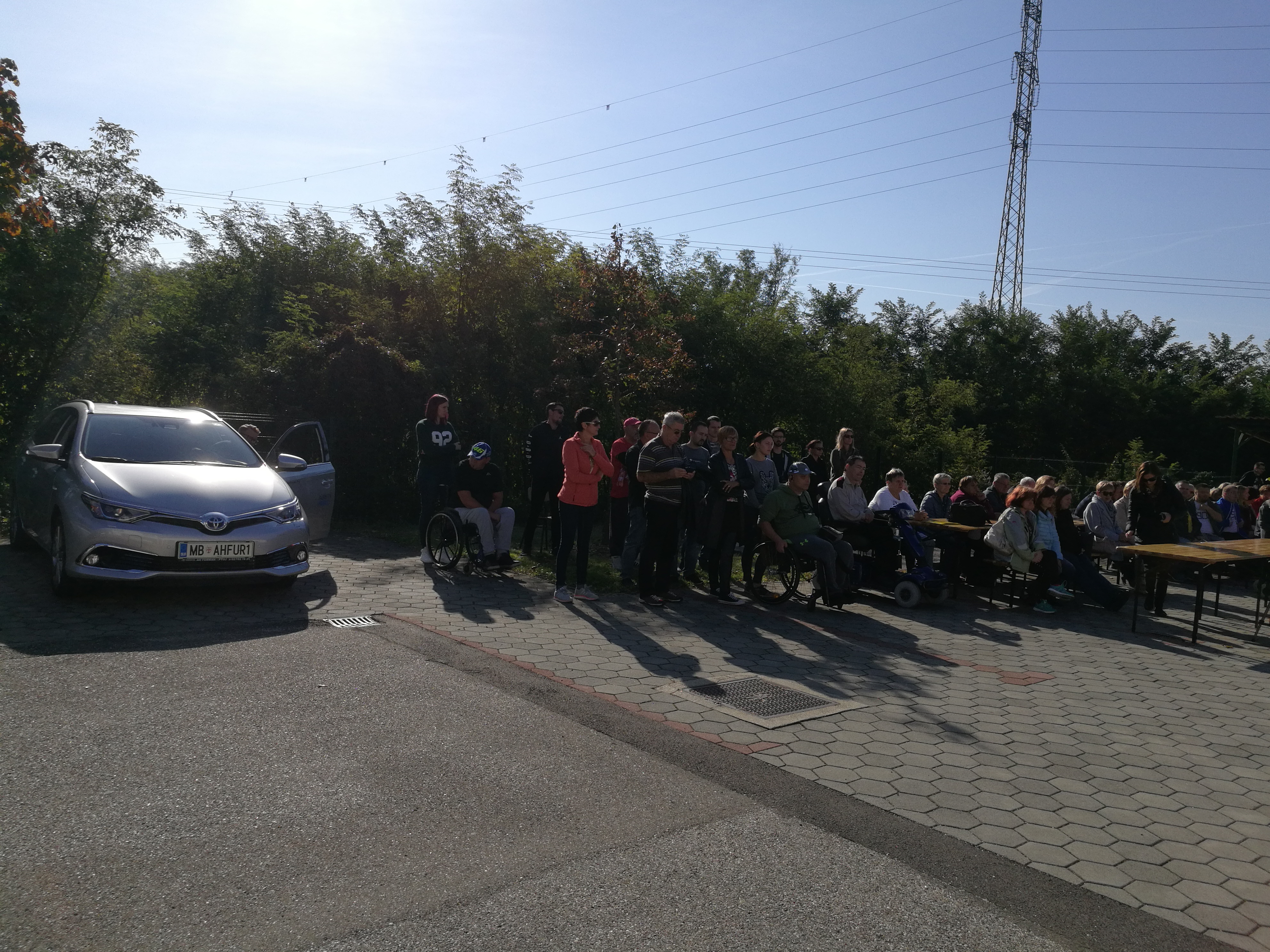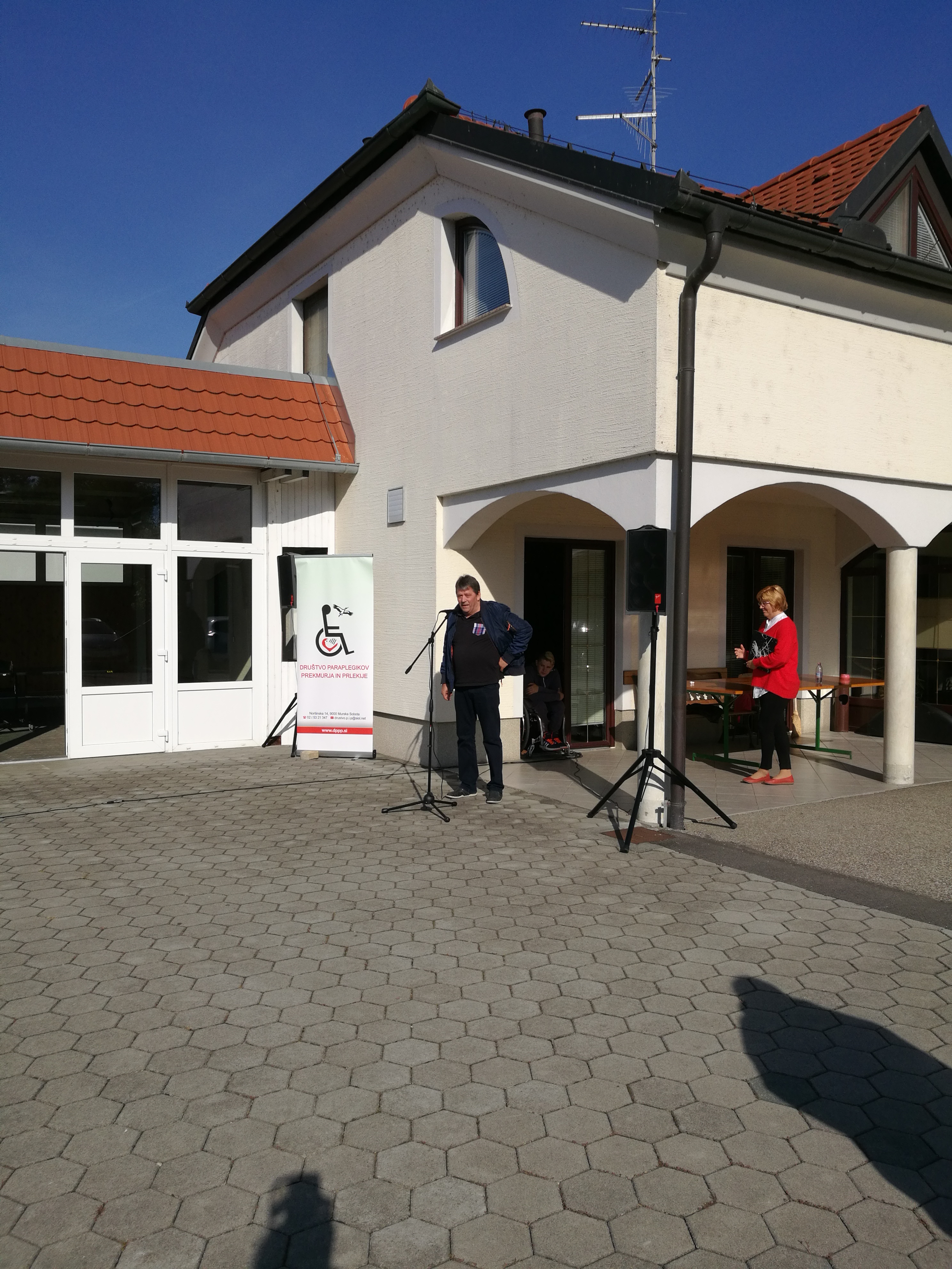 V svojem nagovoru je izpostavil odlično sodelovanje Sveta invalidov in občine. Predstavil nekaj projektov, s katerimi želijo mesto čim bolj urediti invalidom prijazno. Dotaknil pa se je tudi čebelnjaka in pohvalil naše pridne čebelice in čebelarje, da je lahko že po nekaj mesecih delovanja čebelnjaka okusil prvi pridelek iz Prvega učnega čebelnjaka na svetu, prilagojenega za delo z invalidi, za katerega je zaslužna tudi MOMS. Ker nas je božalo toplo jesensko sonce, je svoj nagovor zaključil z besedami, da smo zaslužni za lepo vreme ob tem srečanju, saj smo dobri ljudje in besedo predal predsedniku Sveta invalidov MOMS Branku Gornjecu. Ta se je zahvalil županu in njegovim sodelavcem na MOMS za njihov posluh za invalide. Tudi sam je izpostavil odlično sodelovanje, obenem pa vsem skupaj zaželel prijetno druženje. Kot zadnji, nas je s svojim nagovorom pozdravil predsednik našega društva Stanko Novak in izkazal hvaležnost županu dr. Aleksandru Jevšku za vso dosedanjo pomoč društvu ter vsem navzočim zaželel prijetno dobrodošlico in jih povabil k športnemu tekmovanju in druženju.