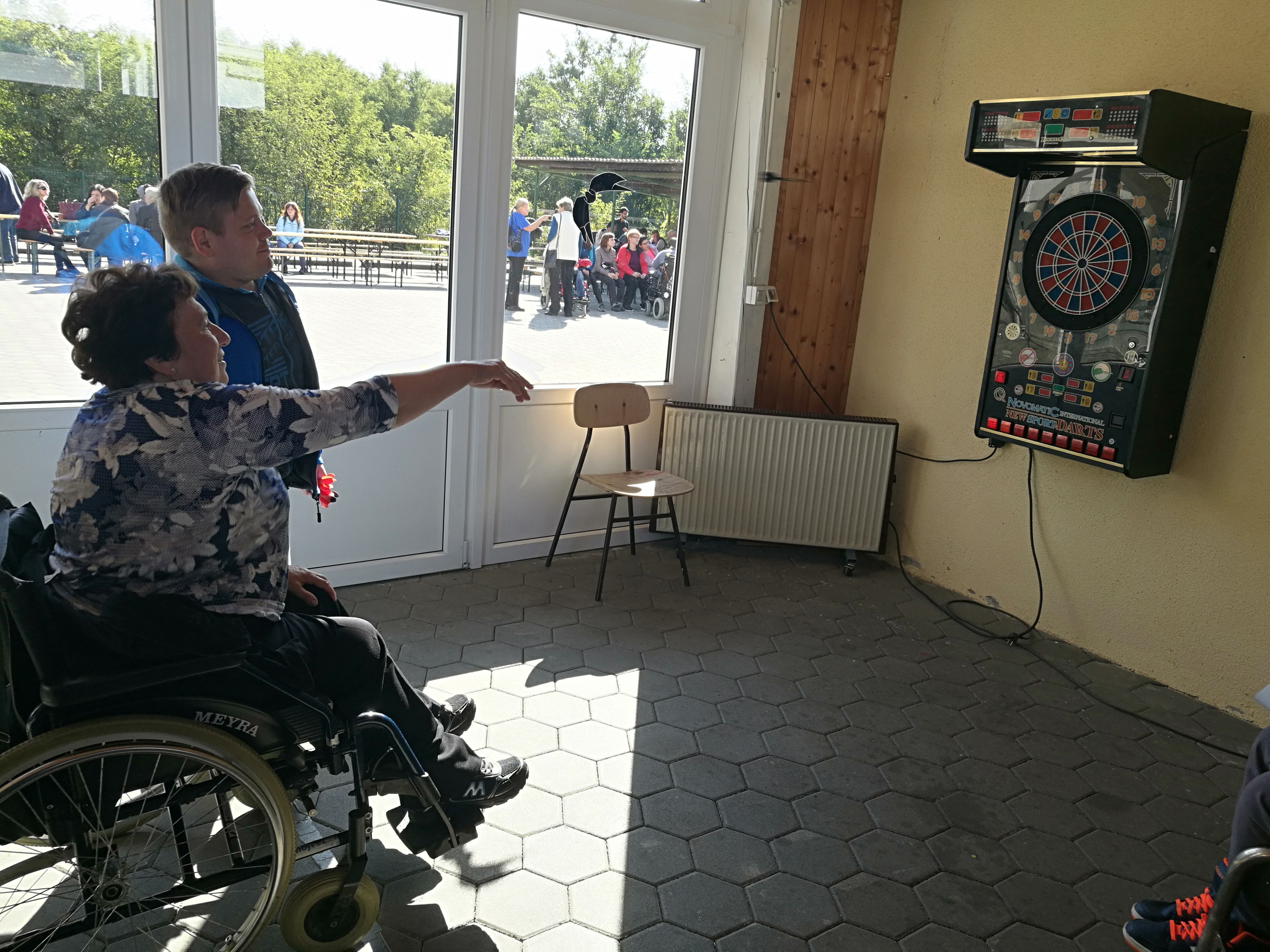 Po uvodnih besedah in kratkem kulturnem programu je sledil še ogled prvega učnega čebelnjaka, prilagojenega za delo z invalidi, ki ga je vodil naš čebelar in mentor Dušan Slana. Nato pa so se tekmovalci iz enajstih invalidskih društev MOMS pomerili v vrtnem kegljanju, pikadu, namiznem tenisu in šahu. Med tekmovanjem je potekala tudi predstavitev lokostrelstva, ki jo je vodil naš član Benjamin Krč. Srečanje se je zaključilo s podelitvijo priznanj najboljšim tekmovalcem v posameznih športnih disciplinah ter najboljšim ekipam. Priznanja je podelil predsednik Sveta invalidov MOMS Branko Gornjec, srečanje in razglasitev rezultatov pa je vodila koordinatorka Centra za poklicno rehabilitacijo Mira Nemec. Med samim srečanjem pa so udeleženci imeli priložnost, da si ogledajo in tudi preizkusijo avtomobil Toyota Auris na ročno upravljanje z ročico BDF.